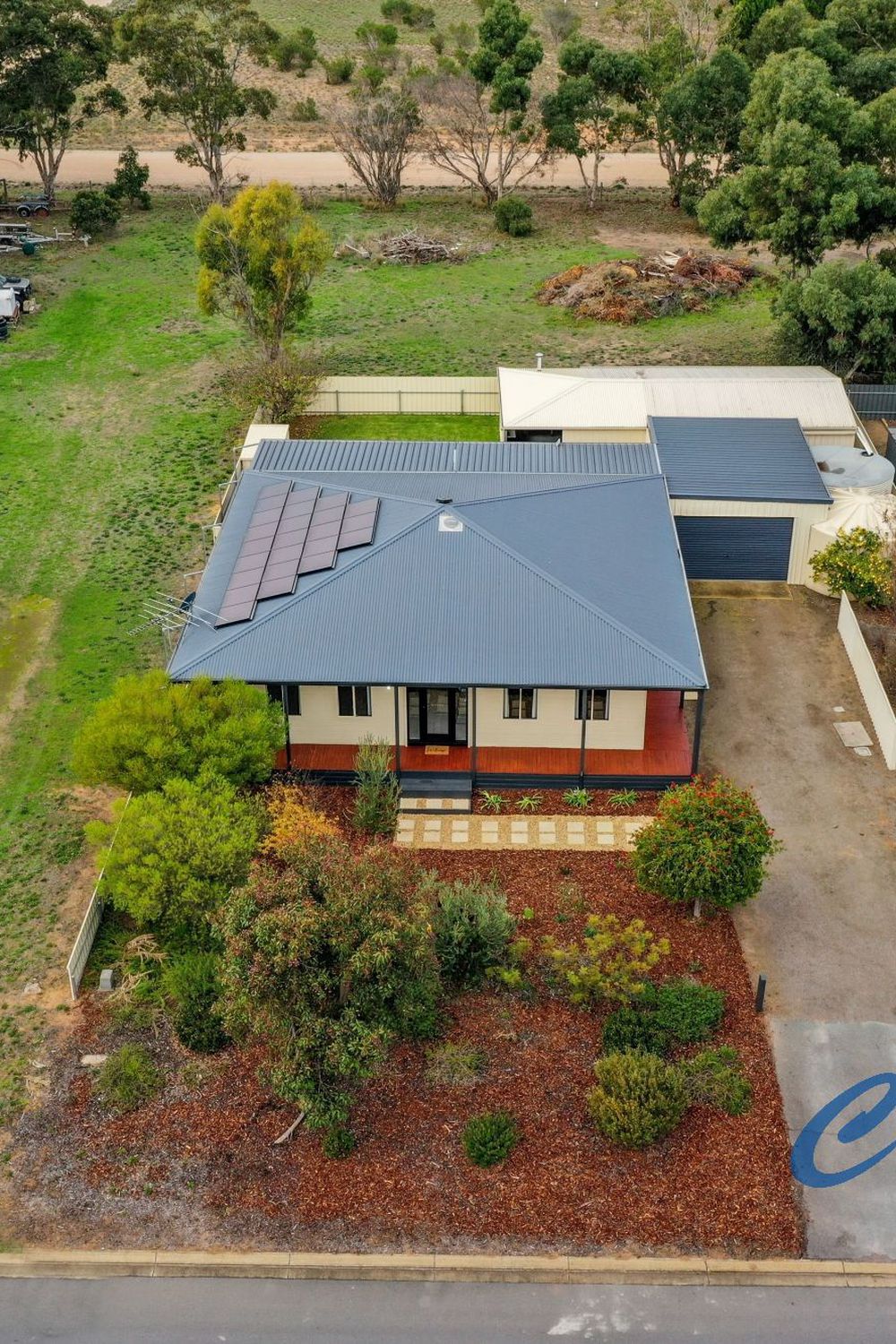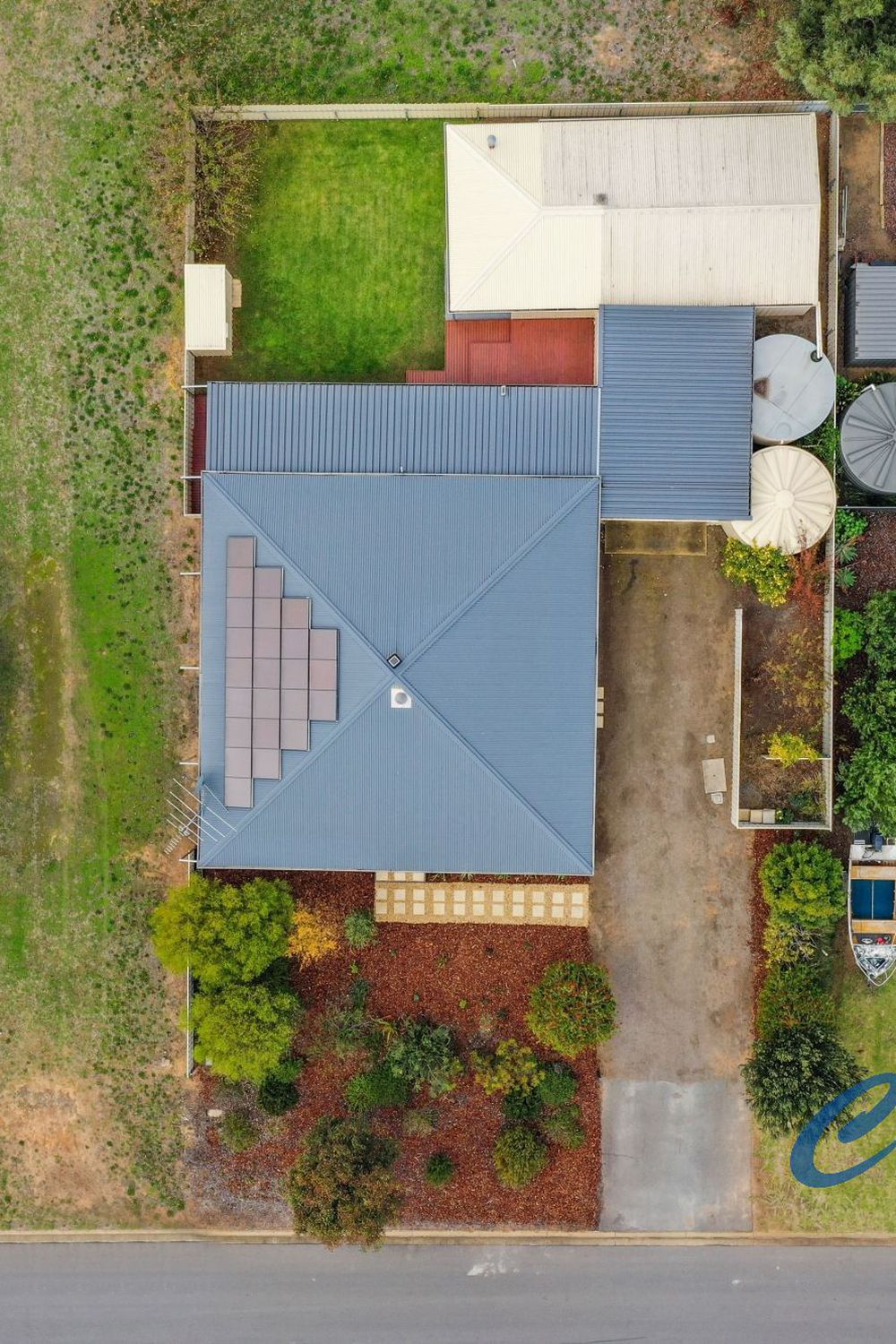 Connected to approx. 50,000L rainwater storage plus mains (non-potable) and 1.7kW solar system.