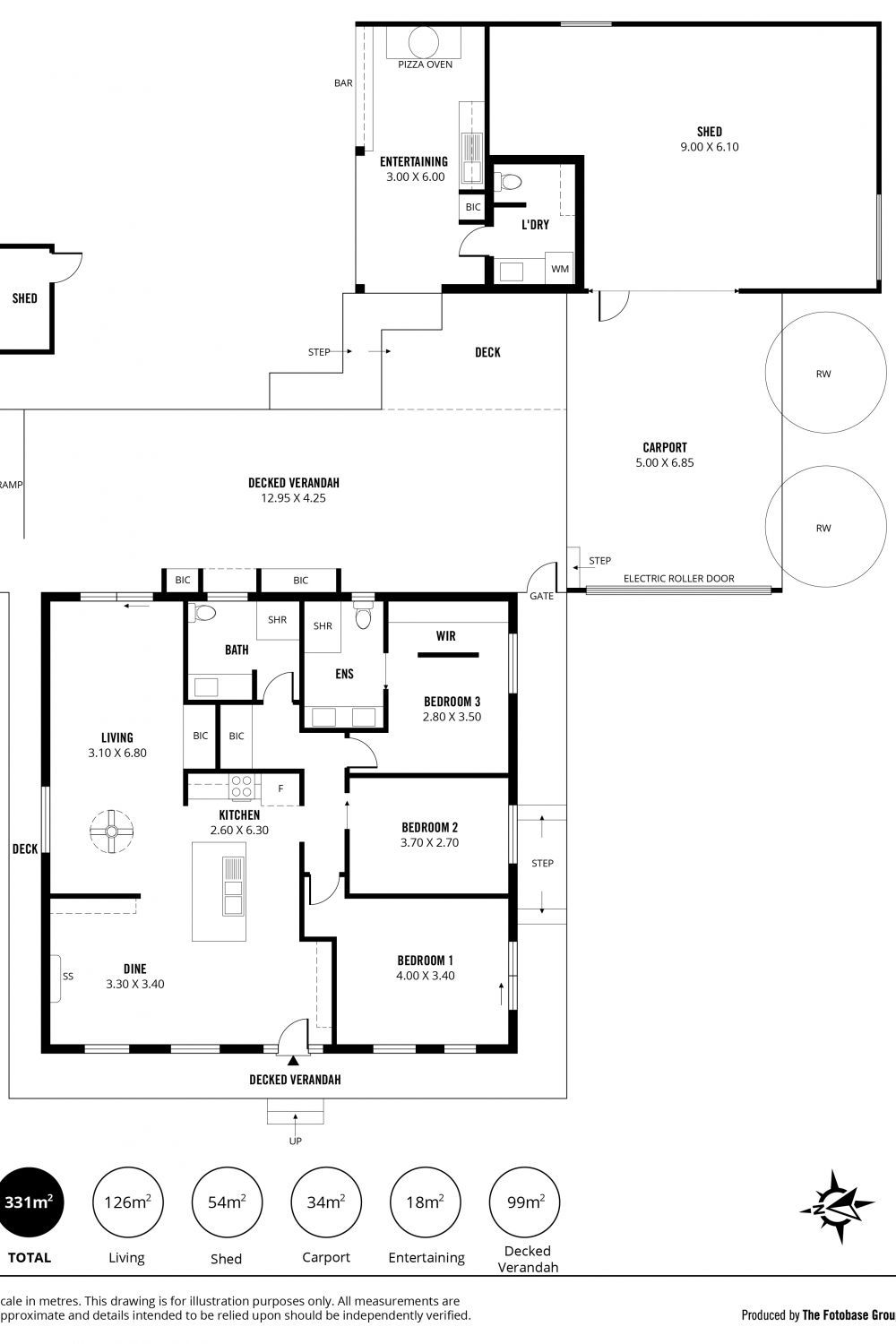 Plenty of secure parking and storage with a 7x5 metre semi enclosed garage and 9x6 metre shed with power.