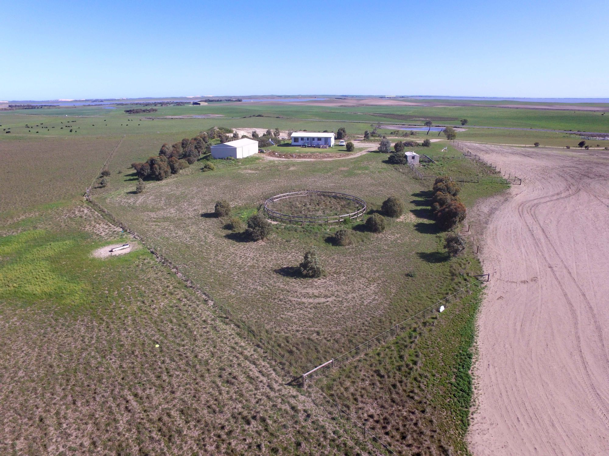 Fully fenced paddocks of sandy loam between limestone ridges, recently sewn with Lucerne.