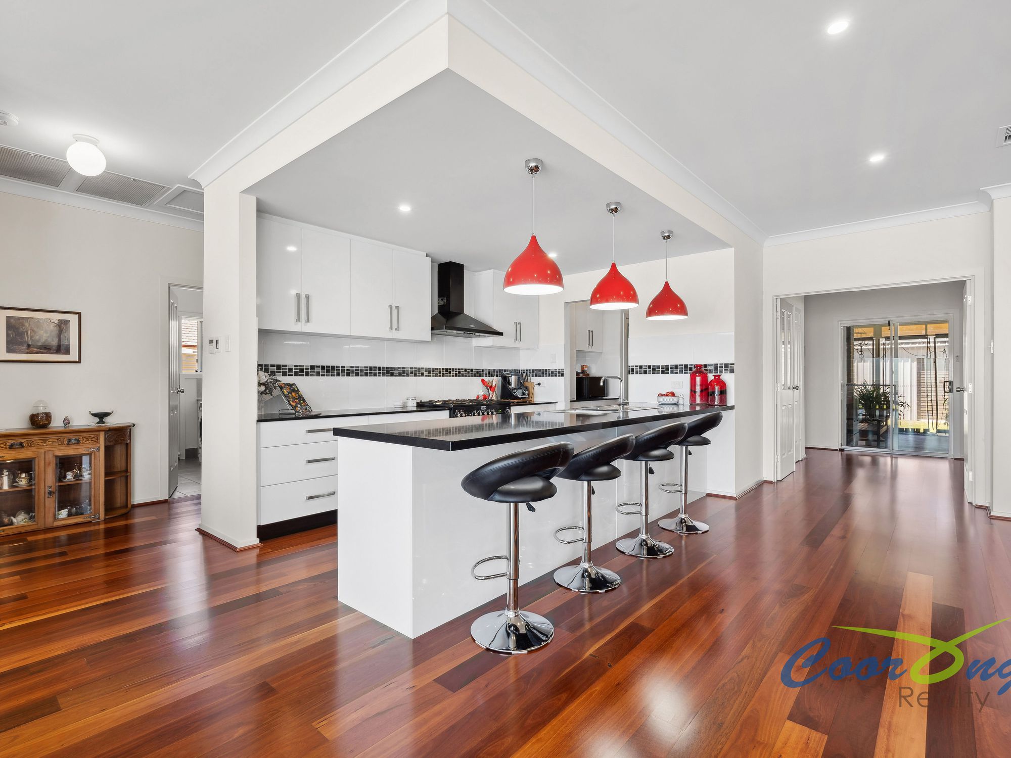 The kitchen is conveniently located, and nothing has been missed. Caesar stone benchtop, silk finish cabinetry, Miele dishwasher and the prominent Falcon gas oven and stove. Head on into the true Butler’s pantry where you will find a wash up sink and a double pantry; ample space for all you catering needs. Entertaining is made easy with the space, quality and even the 100 bottle wine cellar!