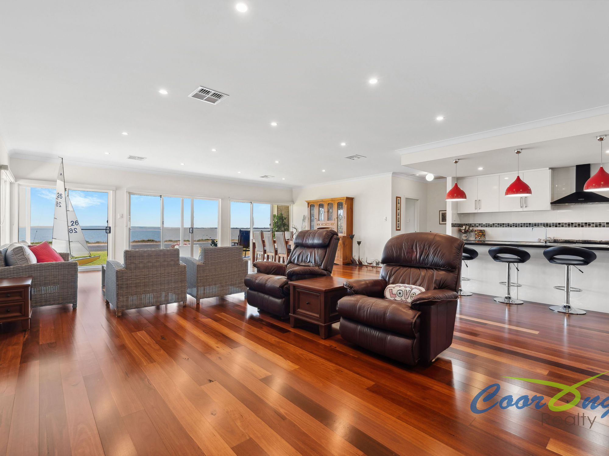 The North facing home takes advantage of commanding water views over Lake Albert, and the most pristine sunsets over water you have ever seen.