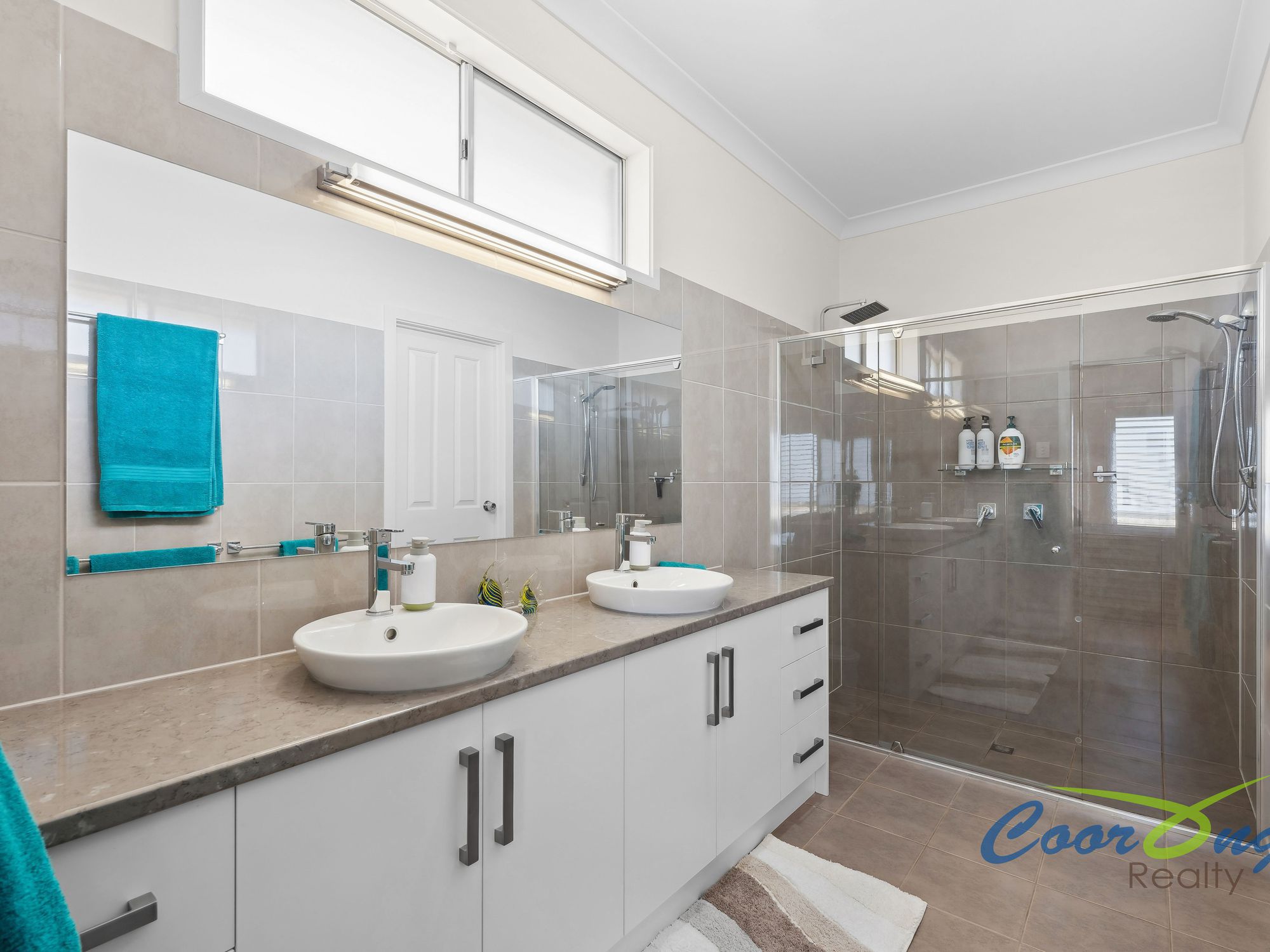 The Master bedroom, as with all of the bedrooms, is of generous size and includes a full mirror built in robe, plus walk in robe and elegant plantation shutters with views out to the water. The ensuite is substantial with double vanity, double shower including rain shower head, and includes a separate toilet for privacy and comfort. The remaining bedrooms have built in robes with mirror sliding doors.