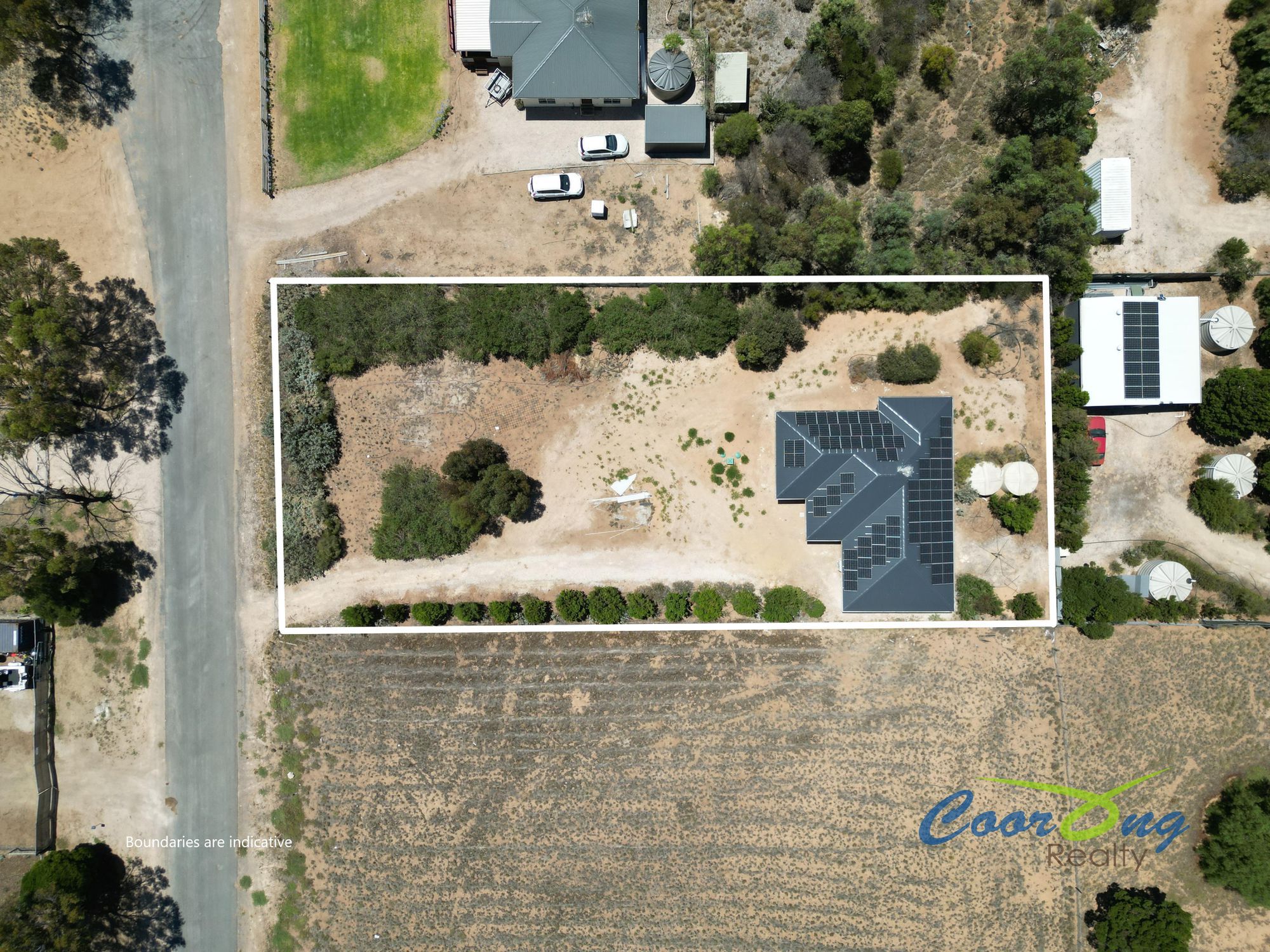 Off grid lifestyle with no utility costs. Rainwater tanks plumbed to the home and solar and battery storage for power. Enviro septic tank.