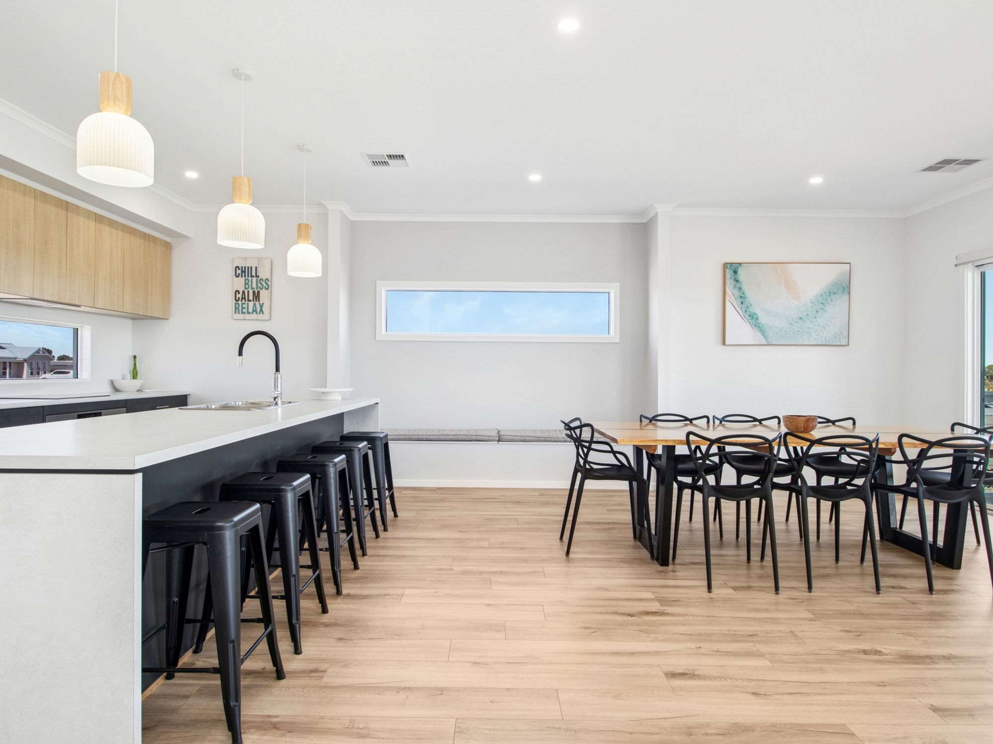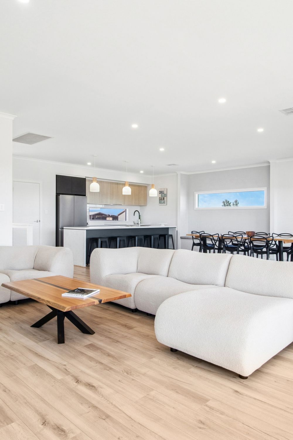 Open plan kitchen, lounge and dining room
