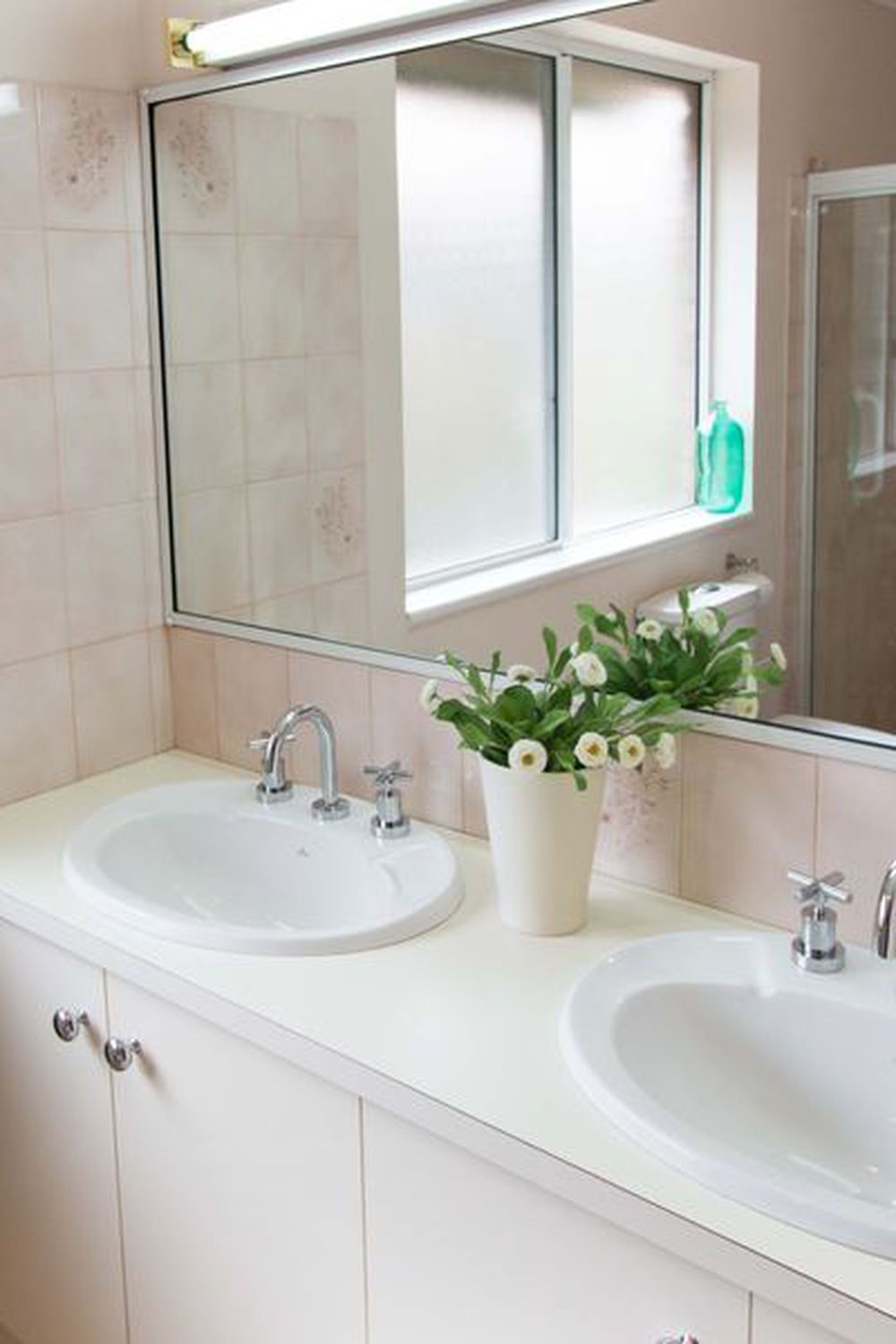 The bathroom is roomy with shower screen and double vanity. There is a second separate toilet.
