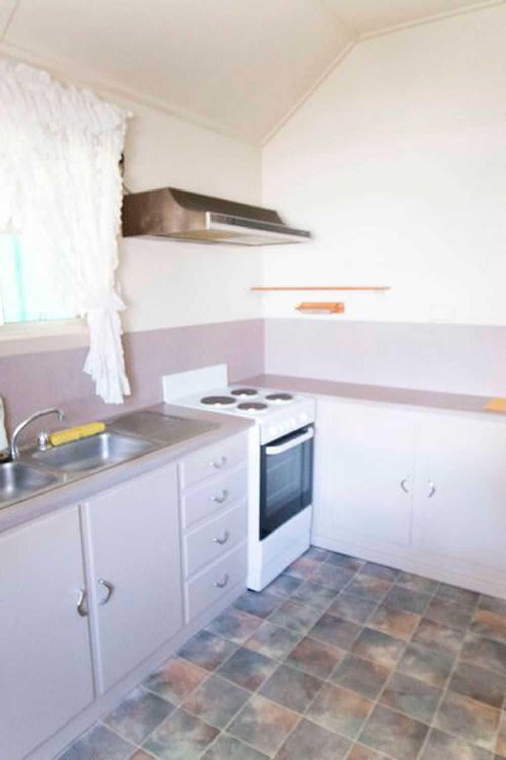 A traditional kitchen and dining area are at the rear of the home and they are also reminiscent of 1950's but with an electric oven and rangehood.