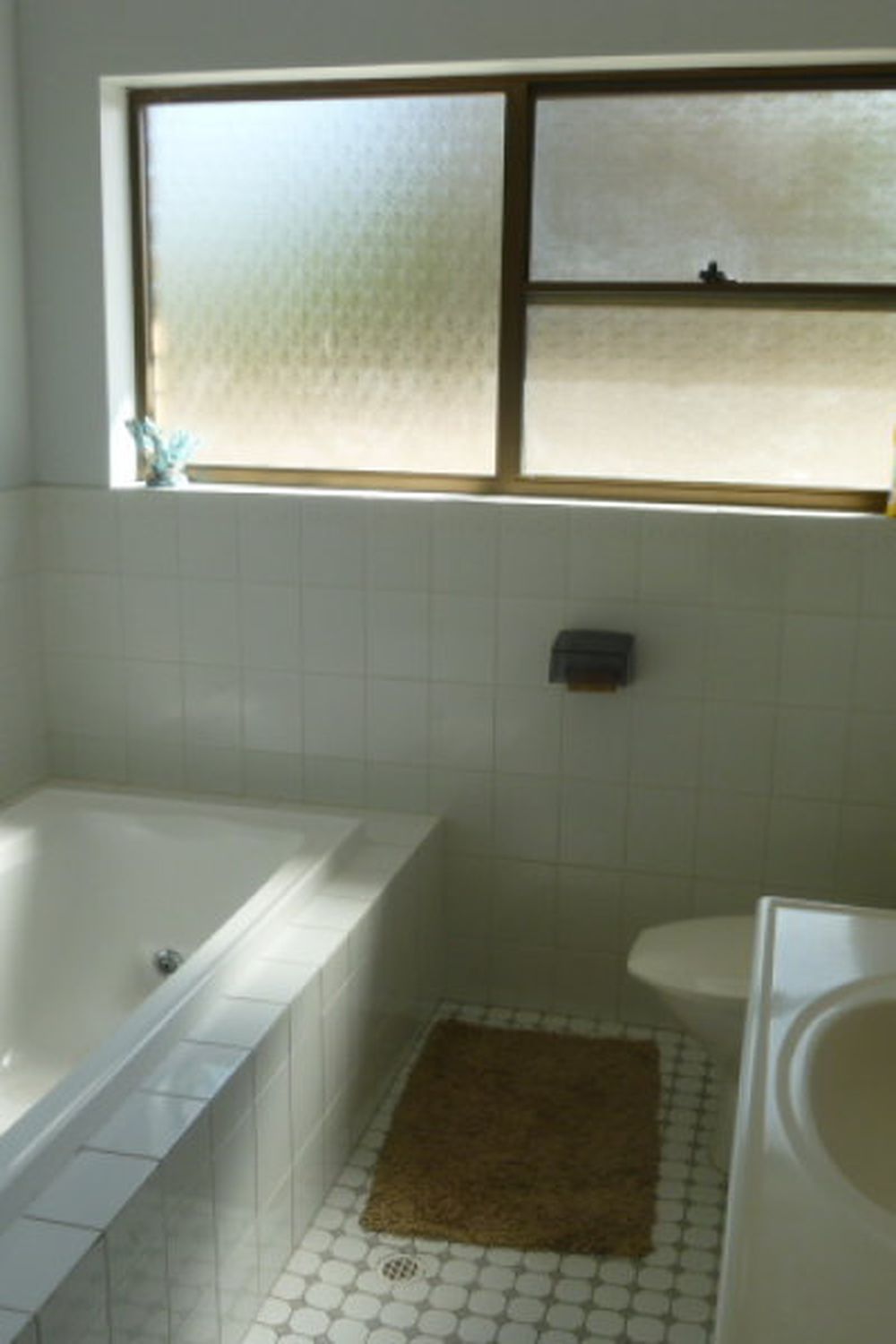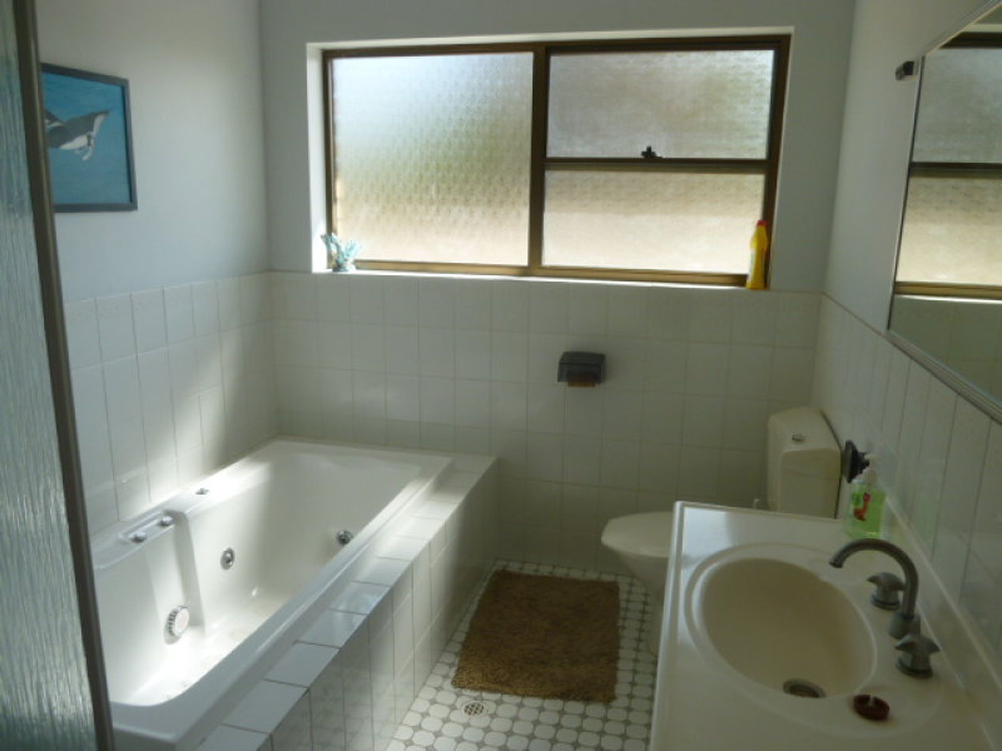The main bathroom consists of a spa bath, separate shower, toilet, & vanity.