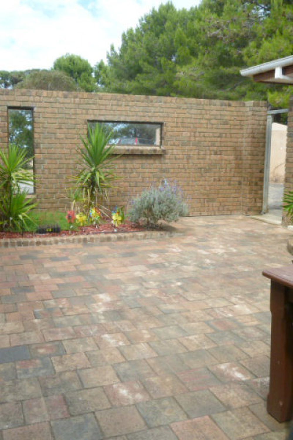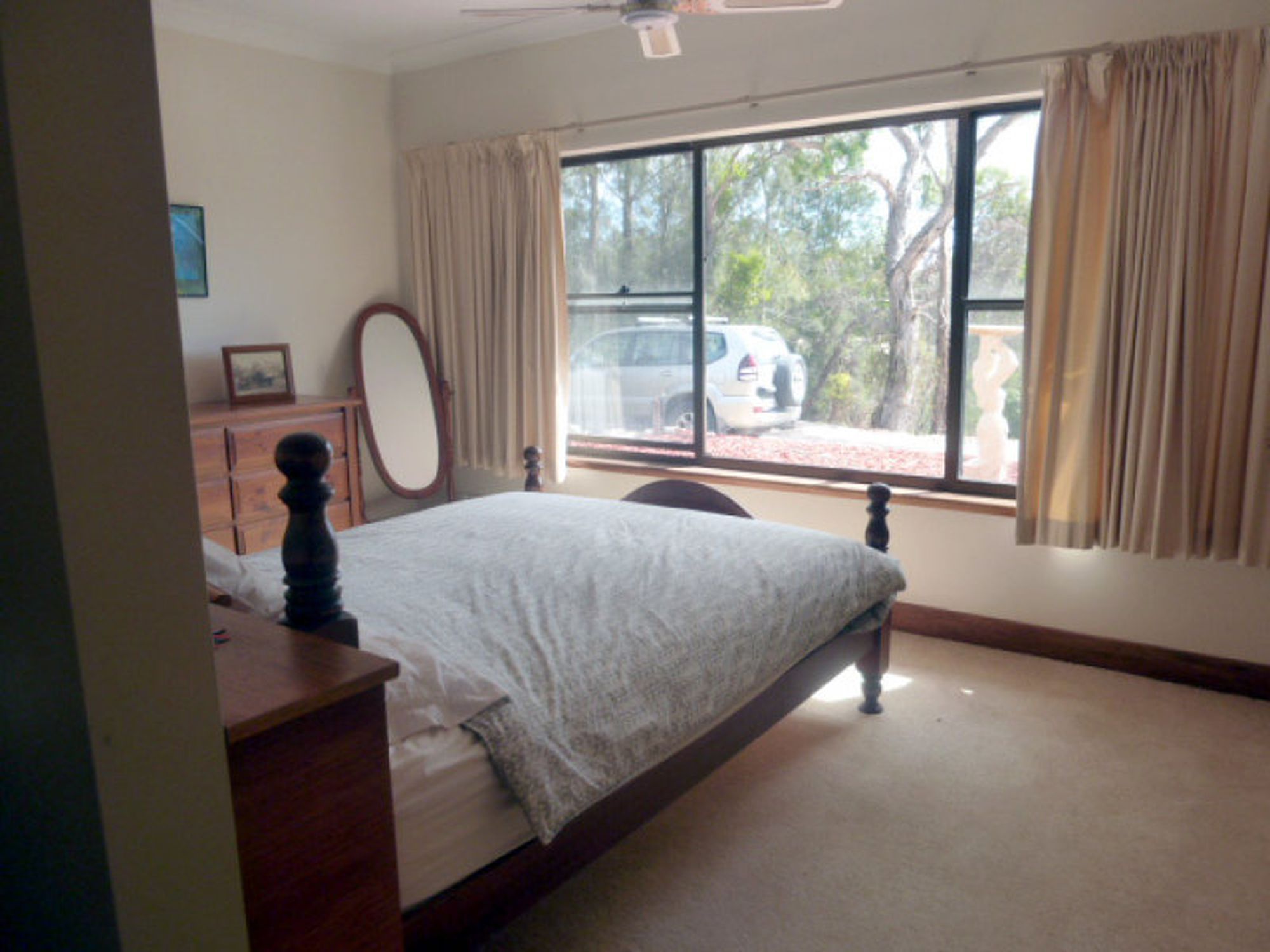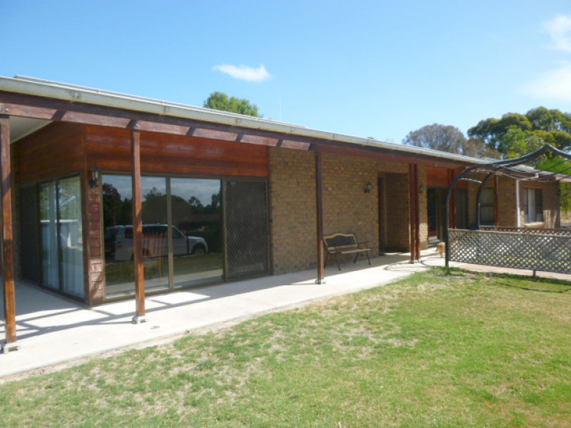 At the rear of the house is a large brick garage, part of which has been enclosed into another bedroom with slow combustion wood heater. The other half of the garage has been kept as a cover area for cars.