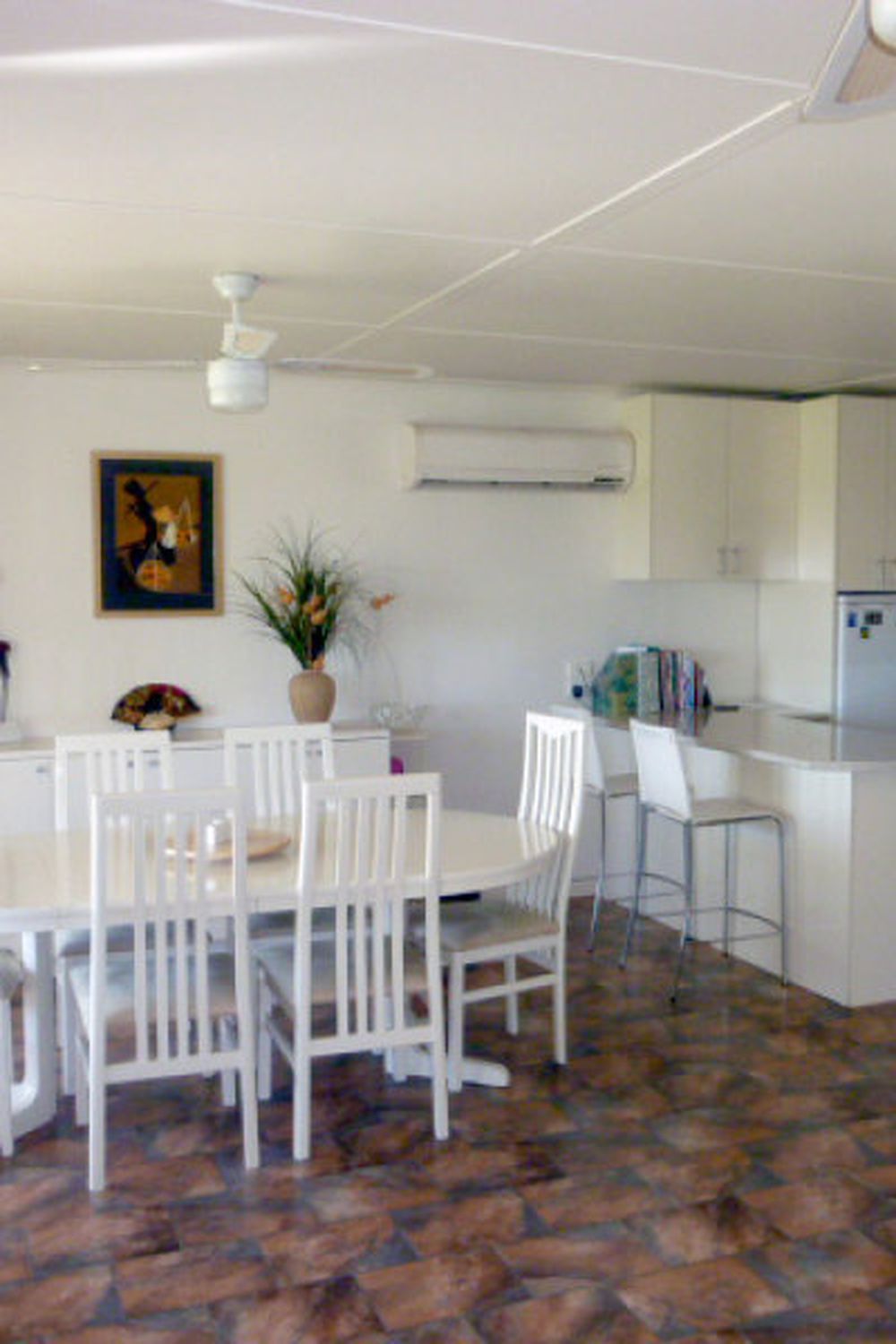 Open plan living consists of modern kitchen, dining & lounge with reverse cycle split system airconditioner.