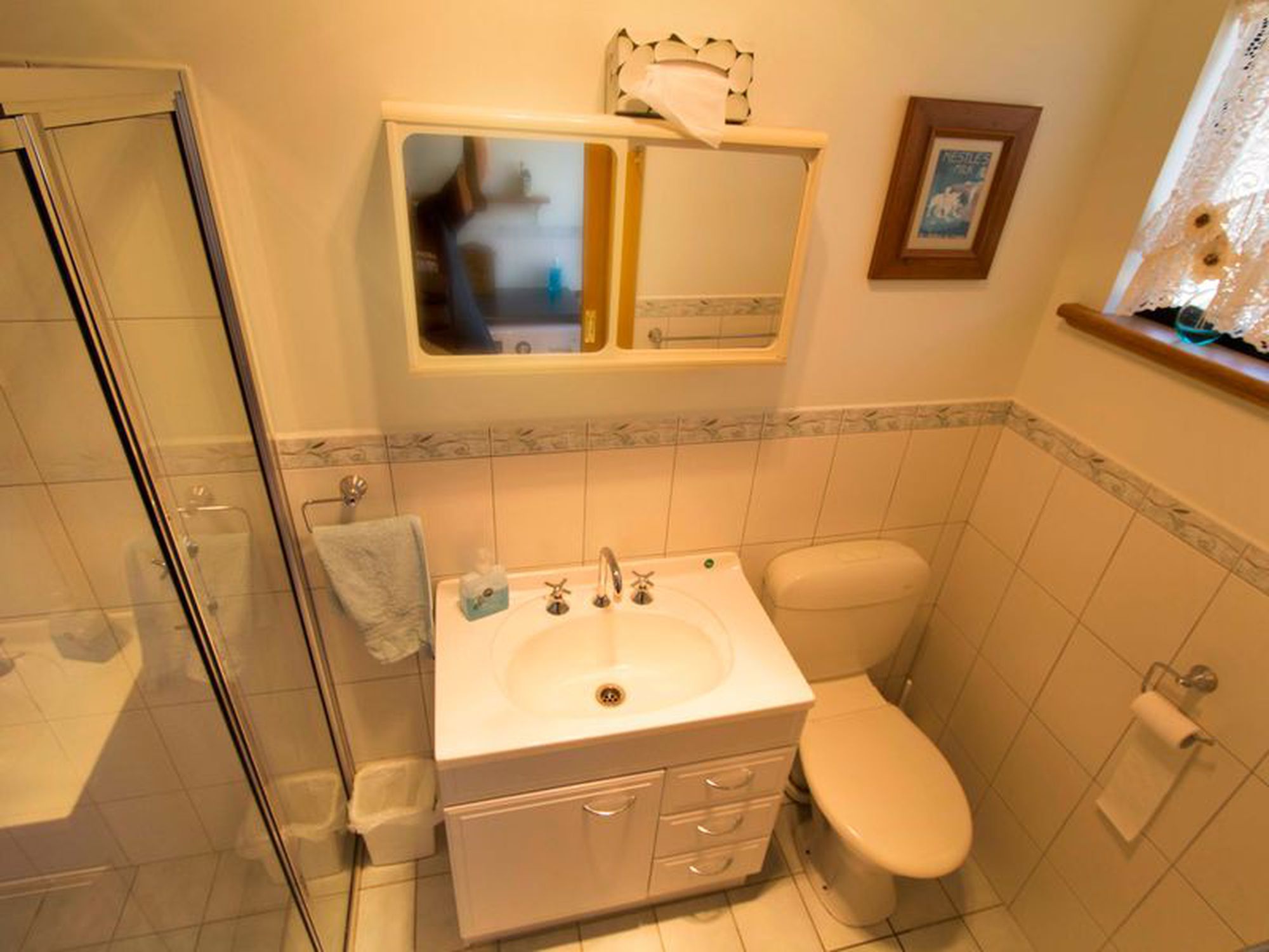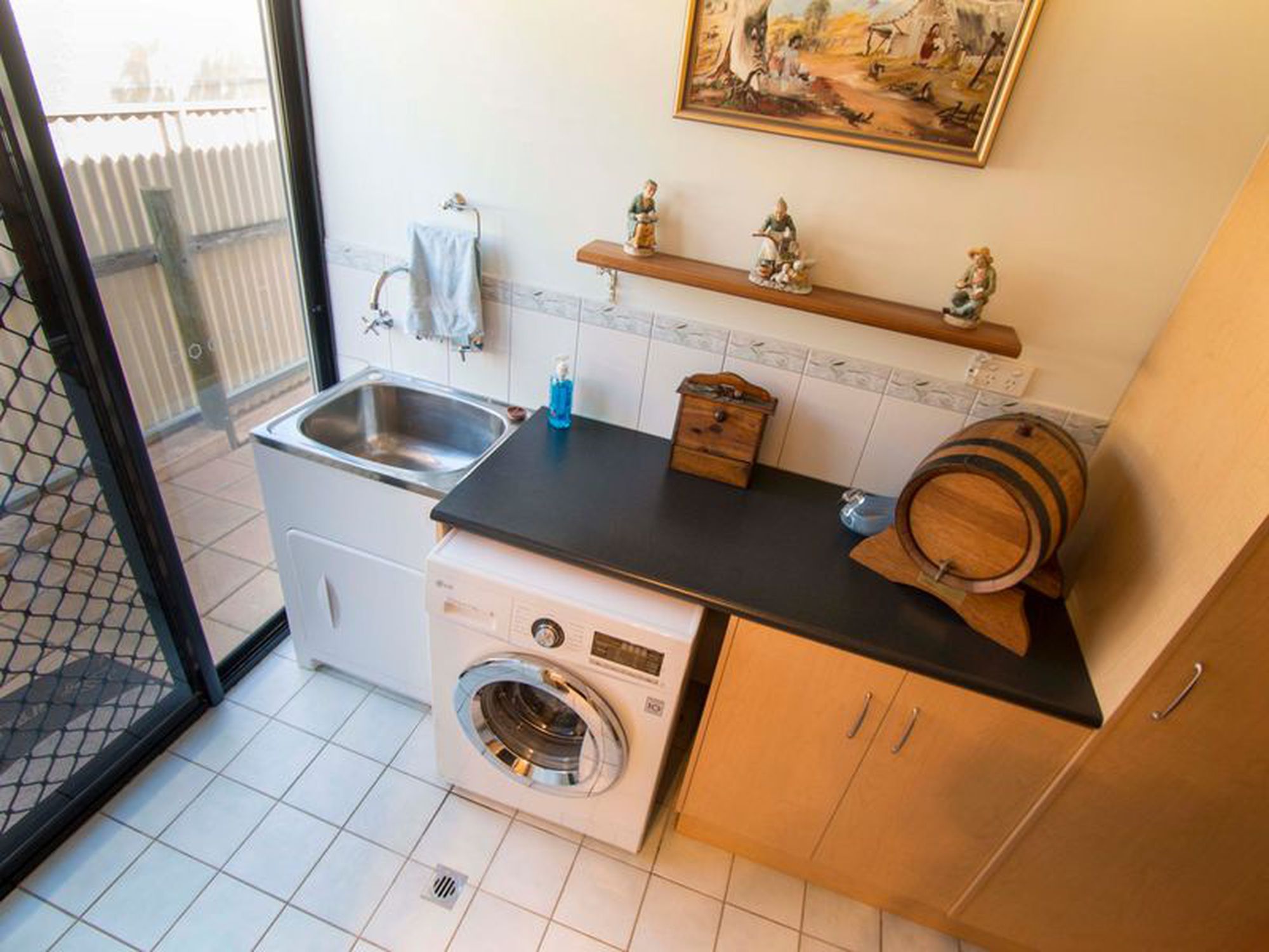 The home is kept comfortable with a reverse cycle air conditioning unit and ducted combustion heater.