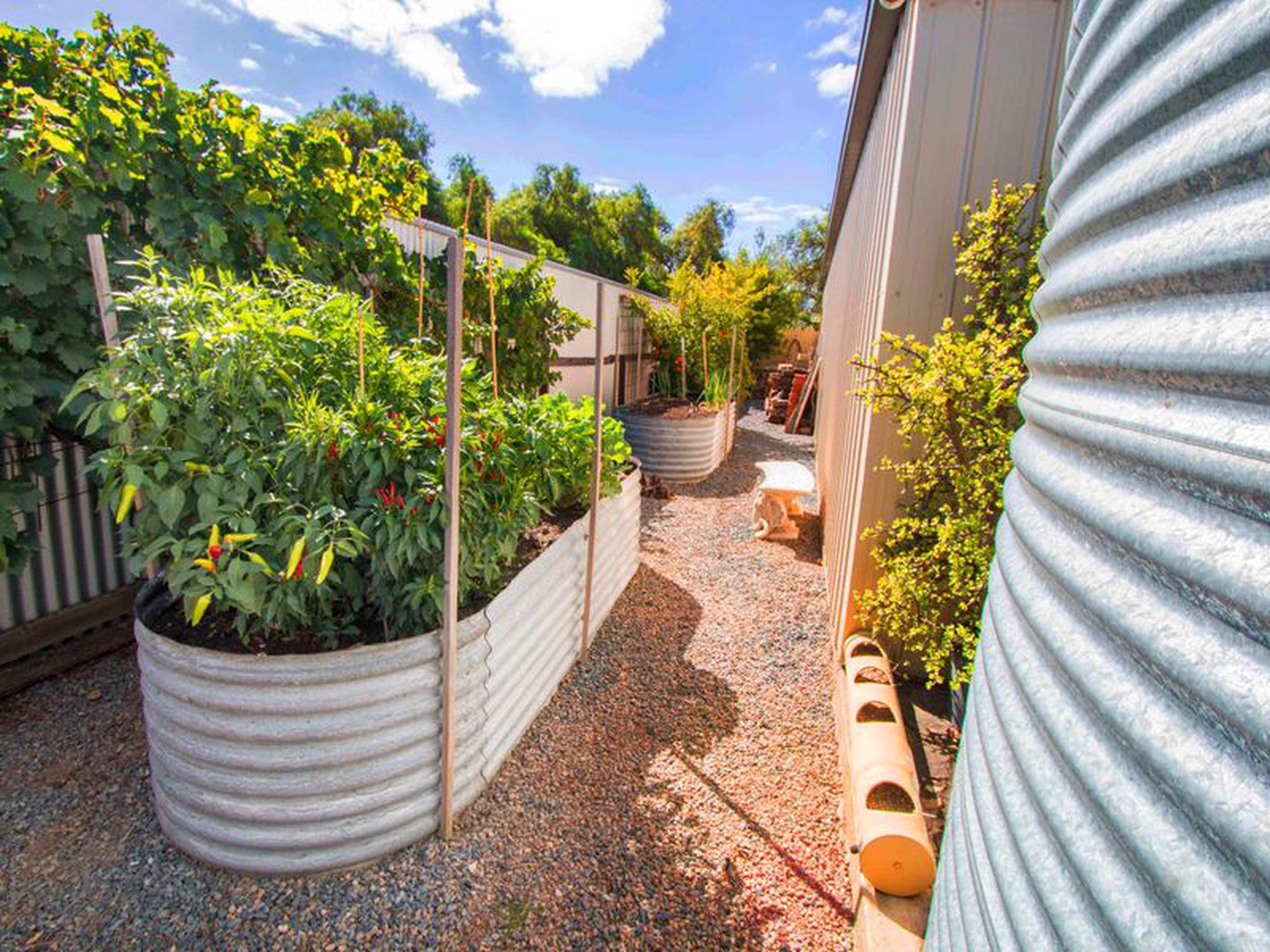 The property features a large, undercover entertaining area with pizza oven and sauna, a large double garage with height adjusted roller doors to allow for caravan storage, and drive through access to the rear garden. This includes extensive paving and landscaping, a fully established vegetable garden with fruit trees, and a large five bay shed with workshop area, bathroom and roller doors. The rear of the shed is fully lined and currently used as an artists’ retreat.
