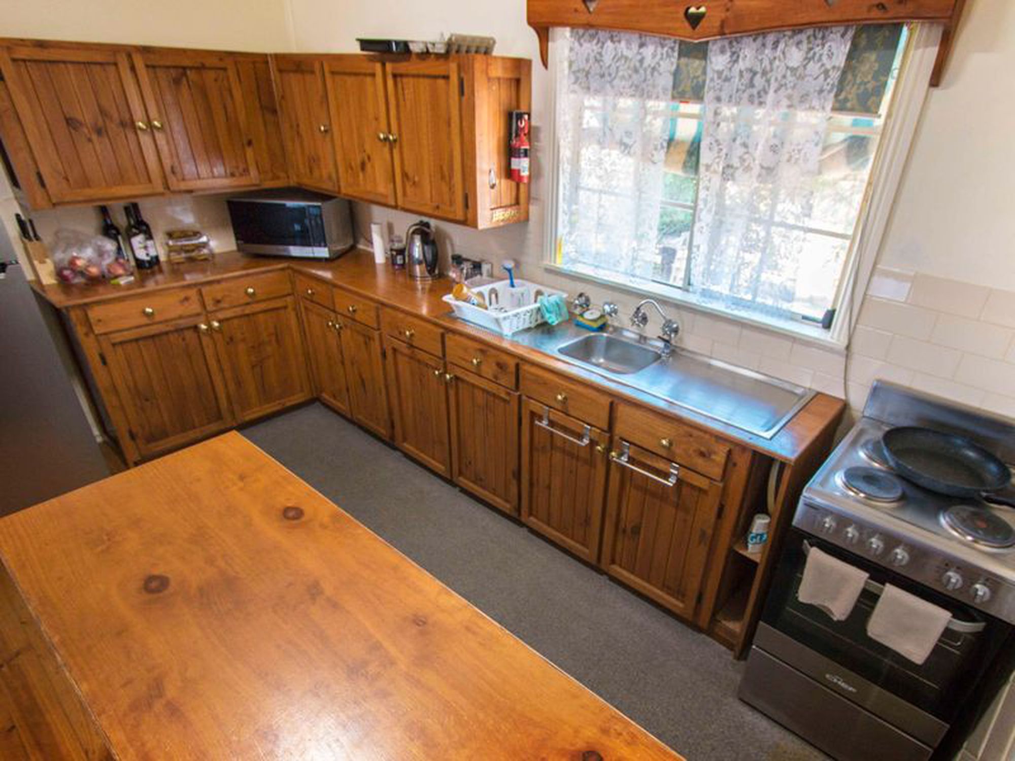 The home features a timber kitchen, that is in good order, and a new stove. The kitchen has good views to the back yard and it overlooks the lounge/dining area.