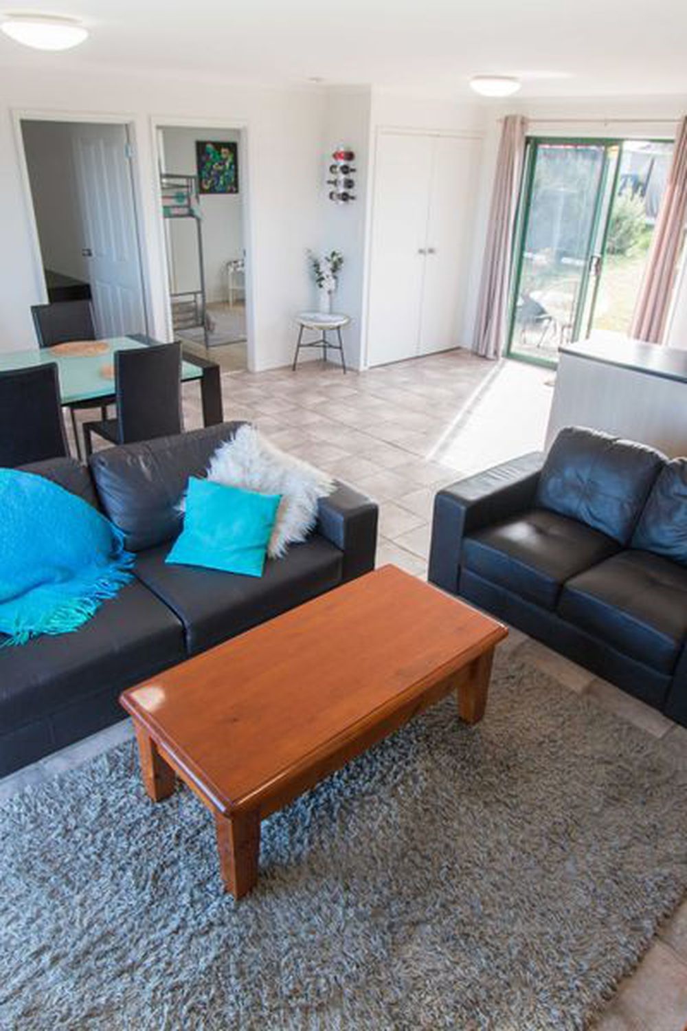 Uniquely and tastefully styled, the house is set up with 3 queen bedrooms and one kids room with a bunk bed.