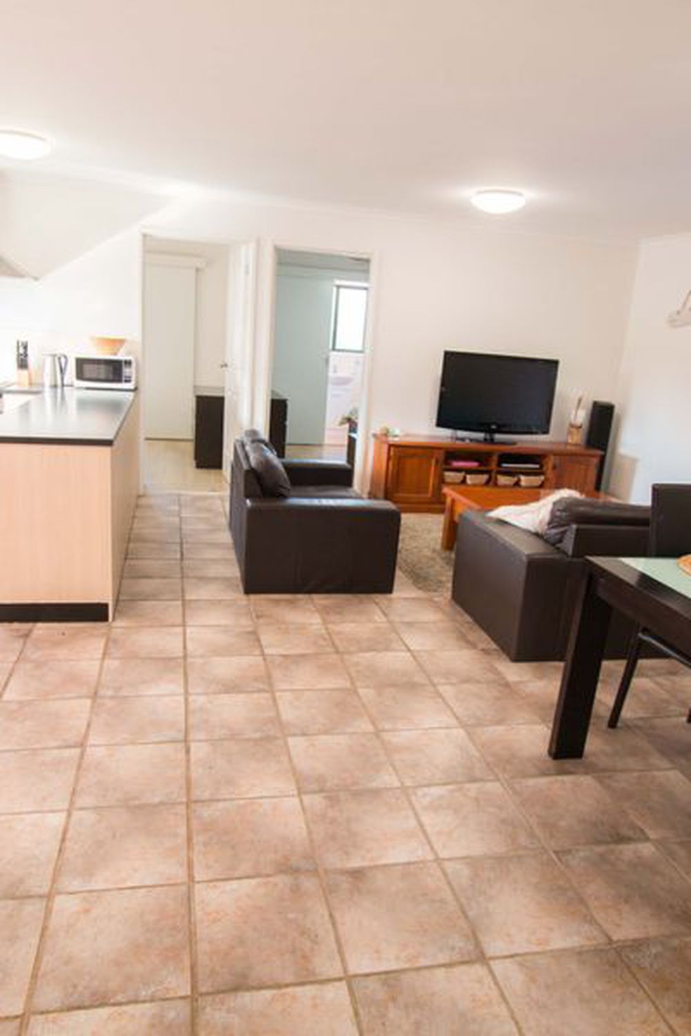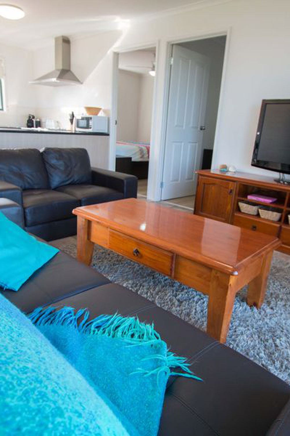 This holiday home has an amazing open plan floorplan which allows a central lounge, dining and kitchen area to share a meal or just relax and take in the views.