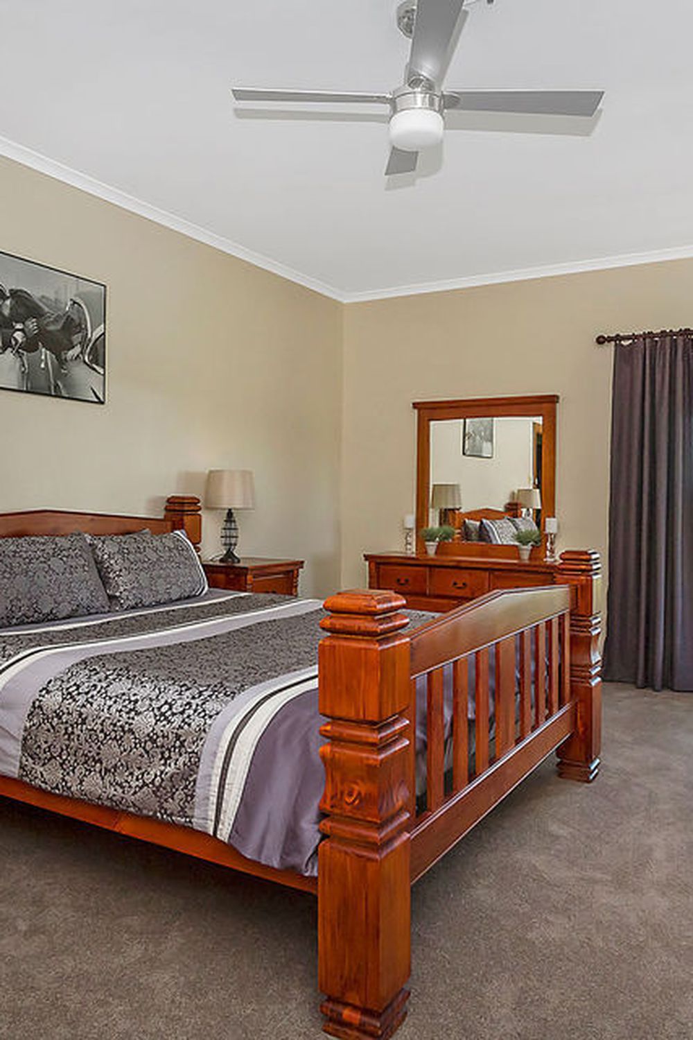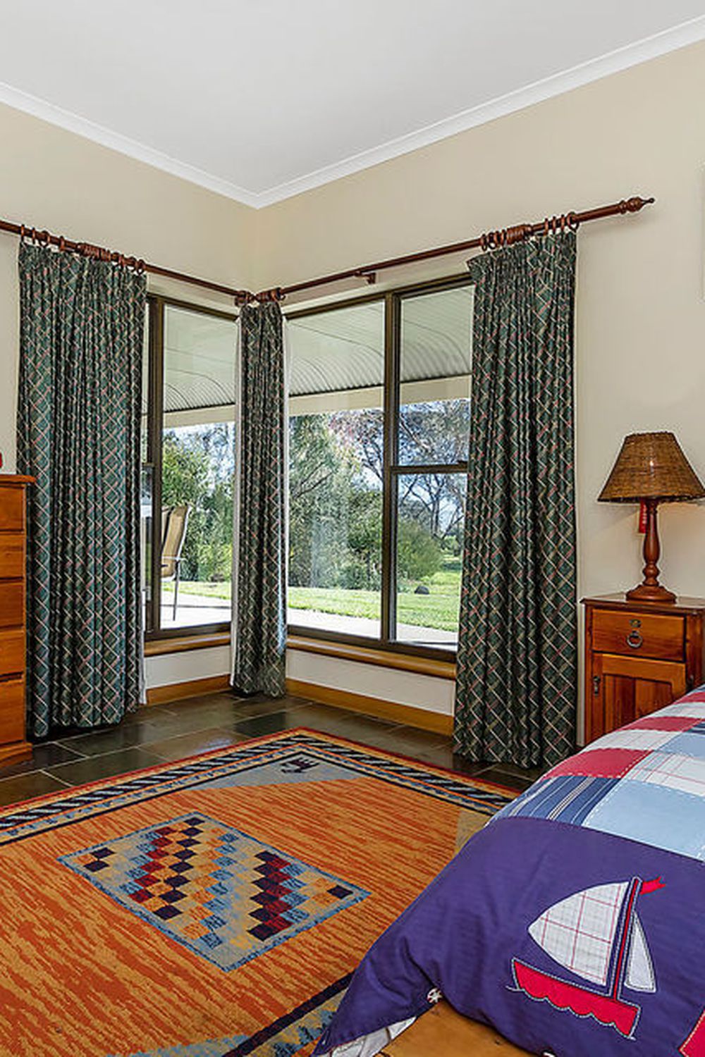 3 bedrooms with the Master containing walk in robe and ensuite. Climate control by a slow combustion fire, ducted reverse cycle air conditioning and ceiling fans.