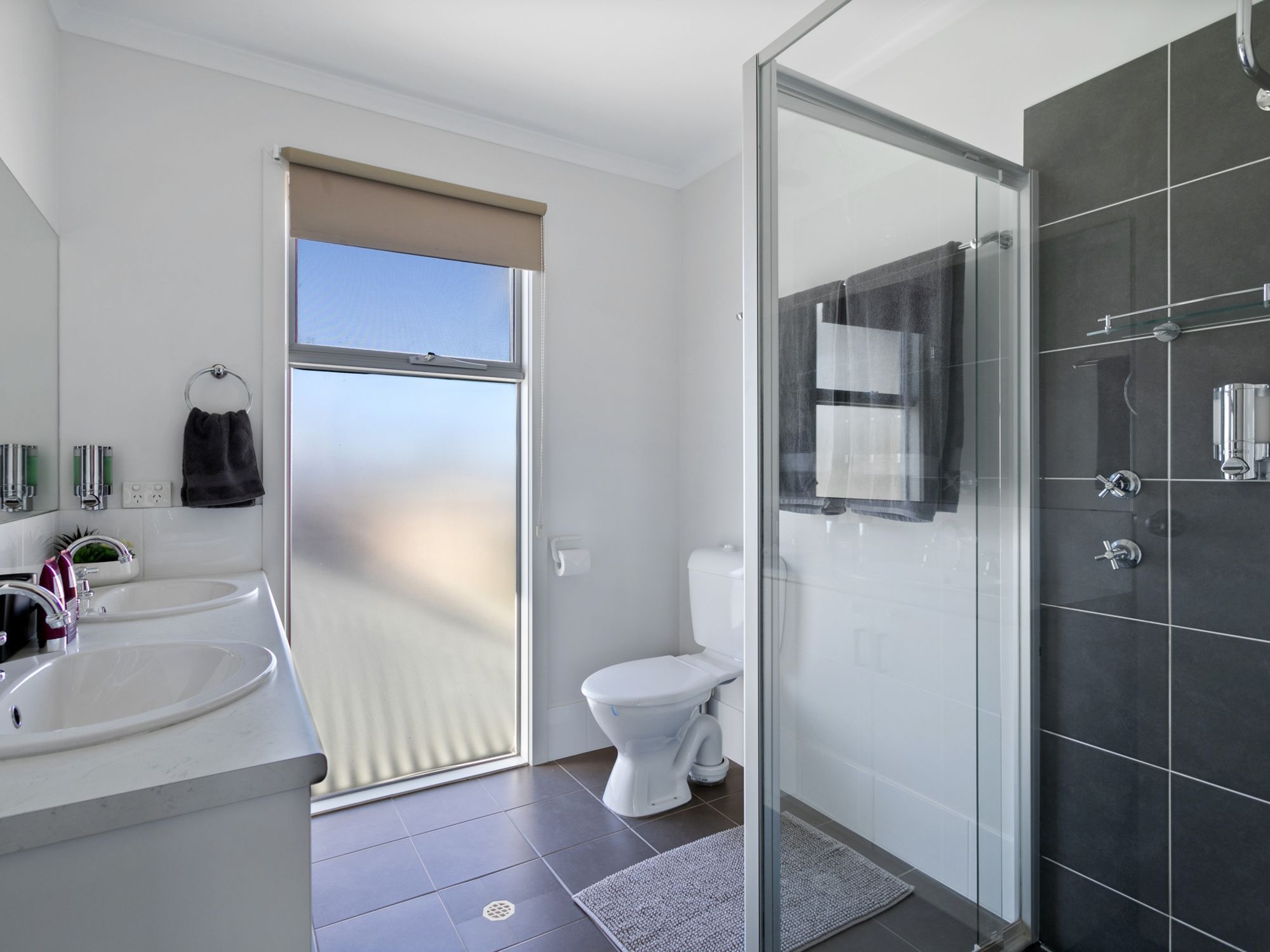 Upstairs: ensuite shower and toilet plus a separate powder room