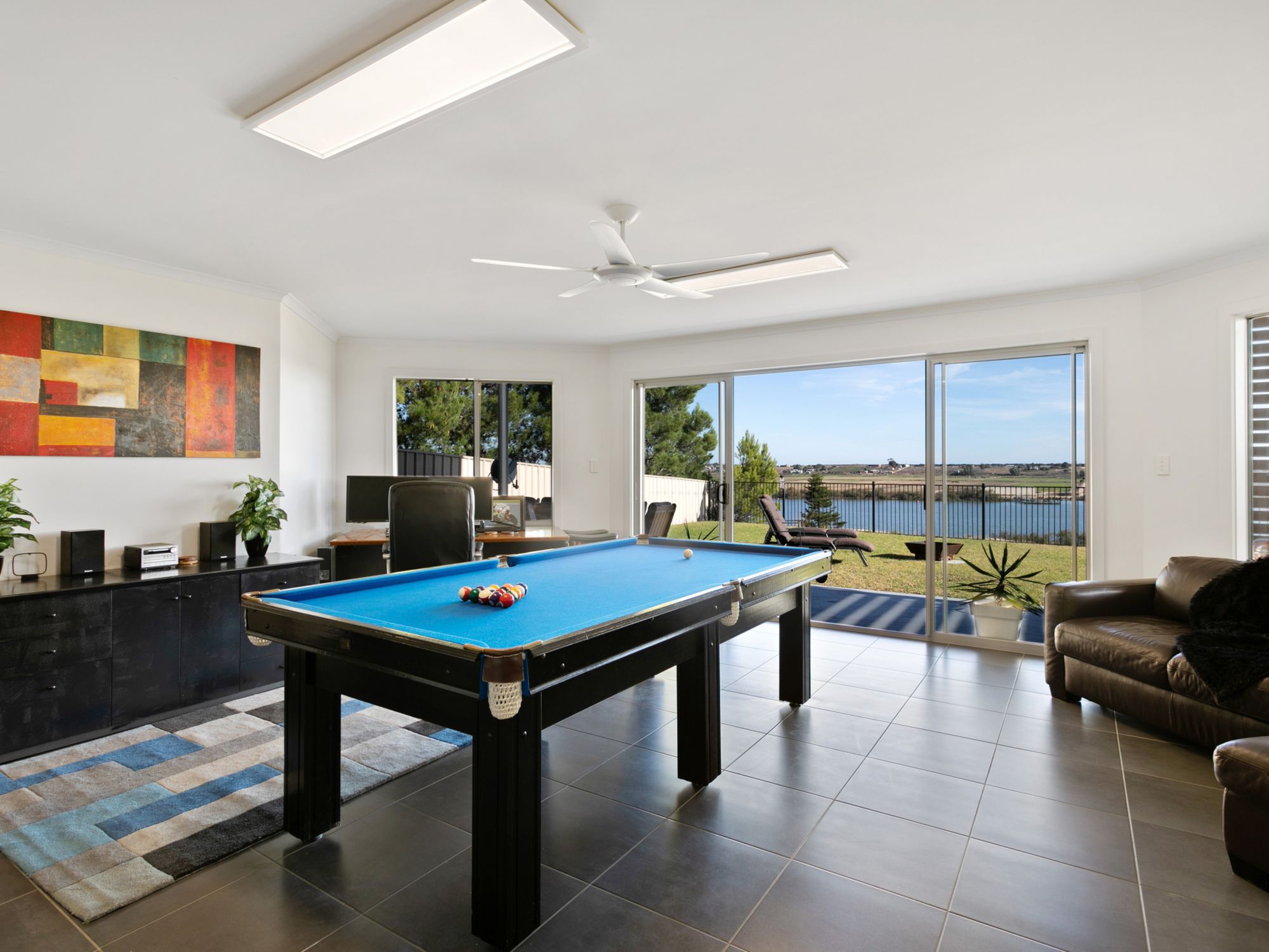 8x4 slate pool table, table tennis table, bar fridge, electronic piano, CD player and radio, 2 kayaks with lifejackets as well as adult and kids board games