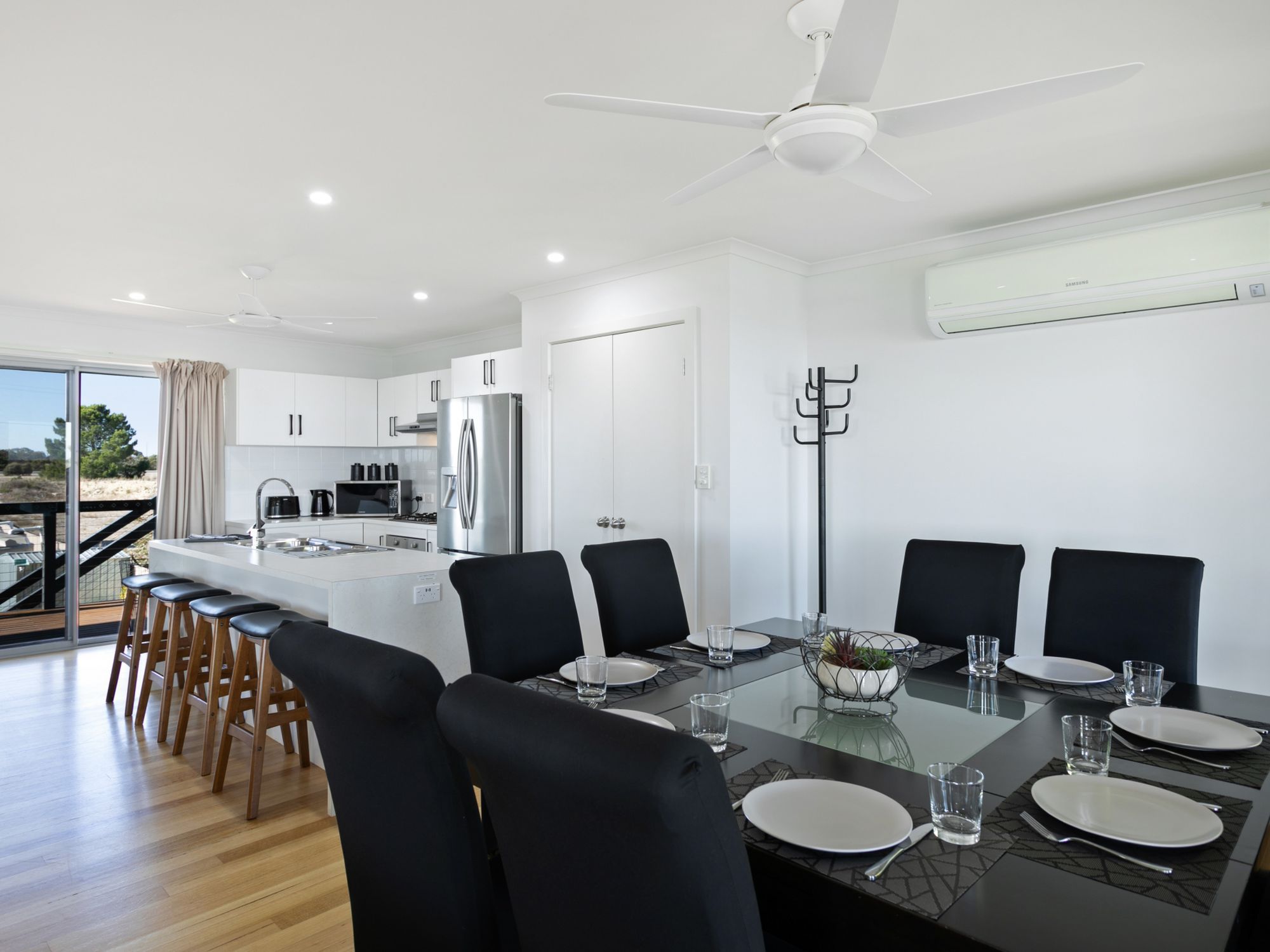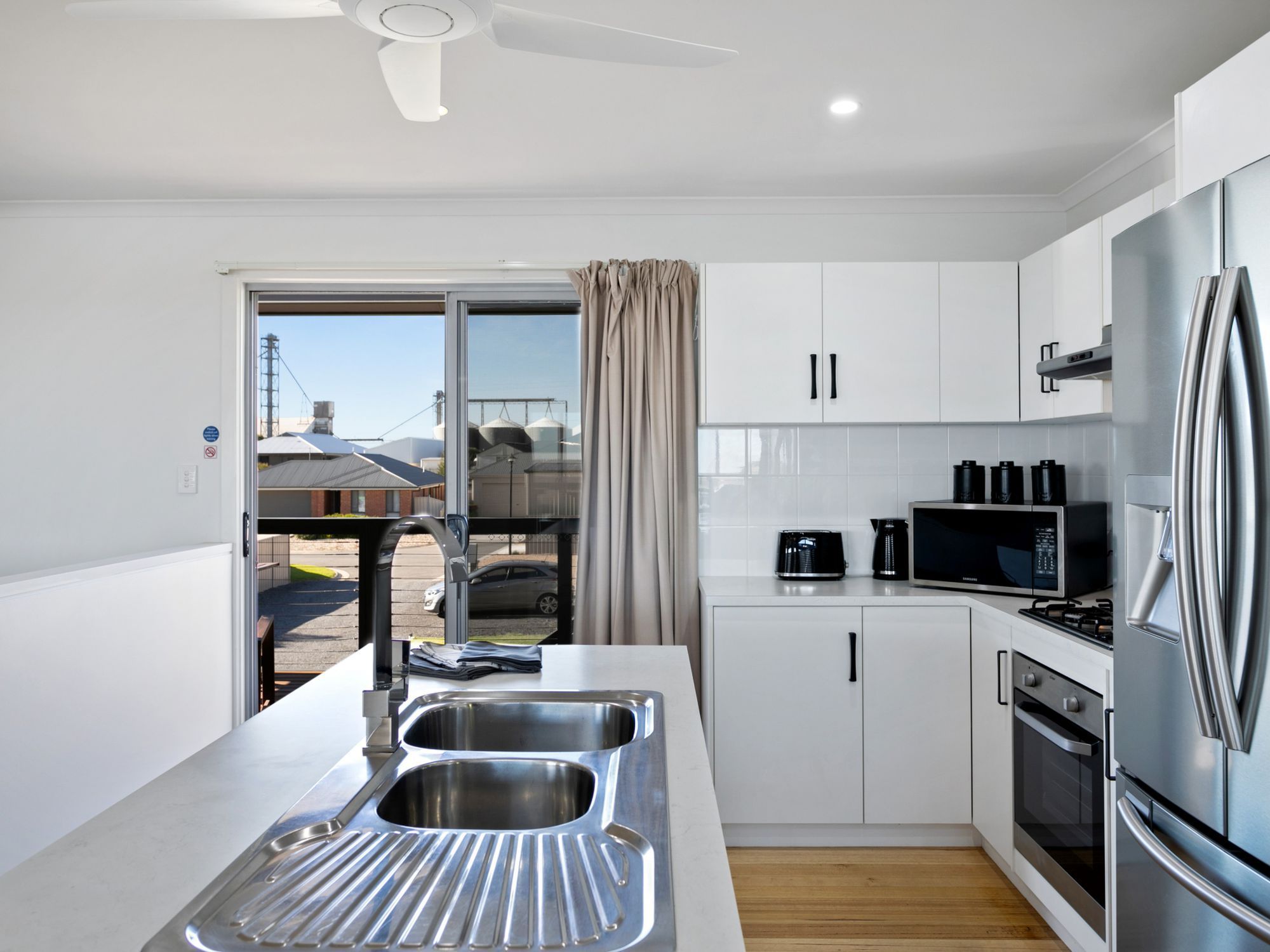 Large double fridge, nespresso pod coffee machine (pods provided), oven and gas cooktop, airfryer, dishwasher, all the basics plus more