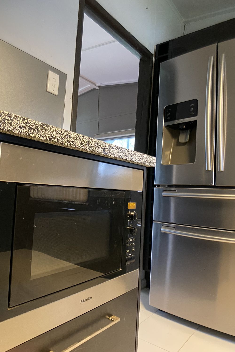 The renovated kitchen with timber island bench also boasts Sicilian granite benchtop, quality Miele appliances including dishwasher, under bench oven and built-in microwave. To keep the cottage charm, the kitchen also contains a working Metters stove.