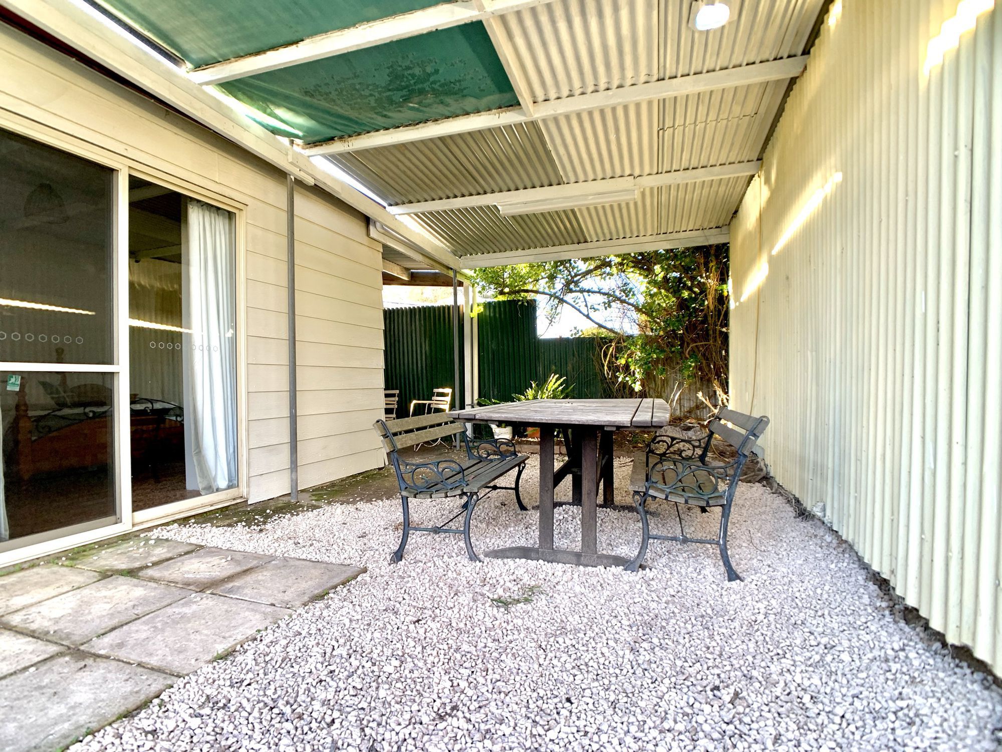 An undercover entertaining area and a side undercover storage area.