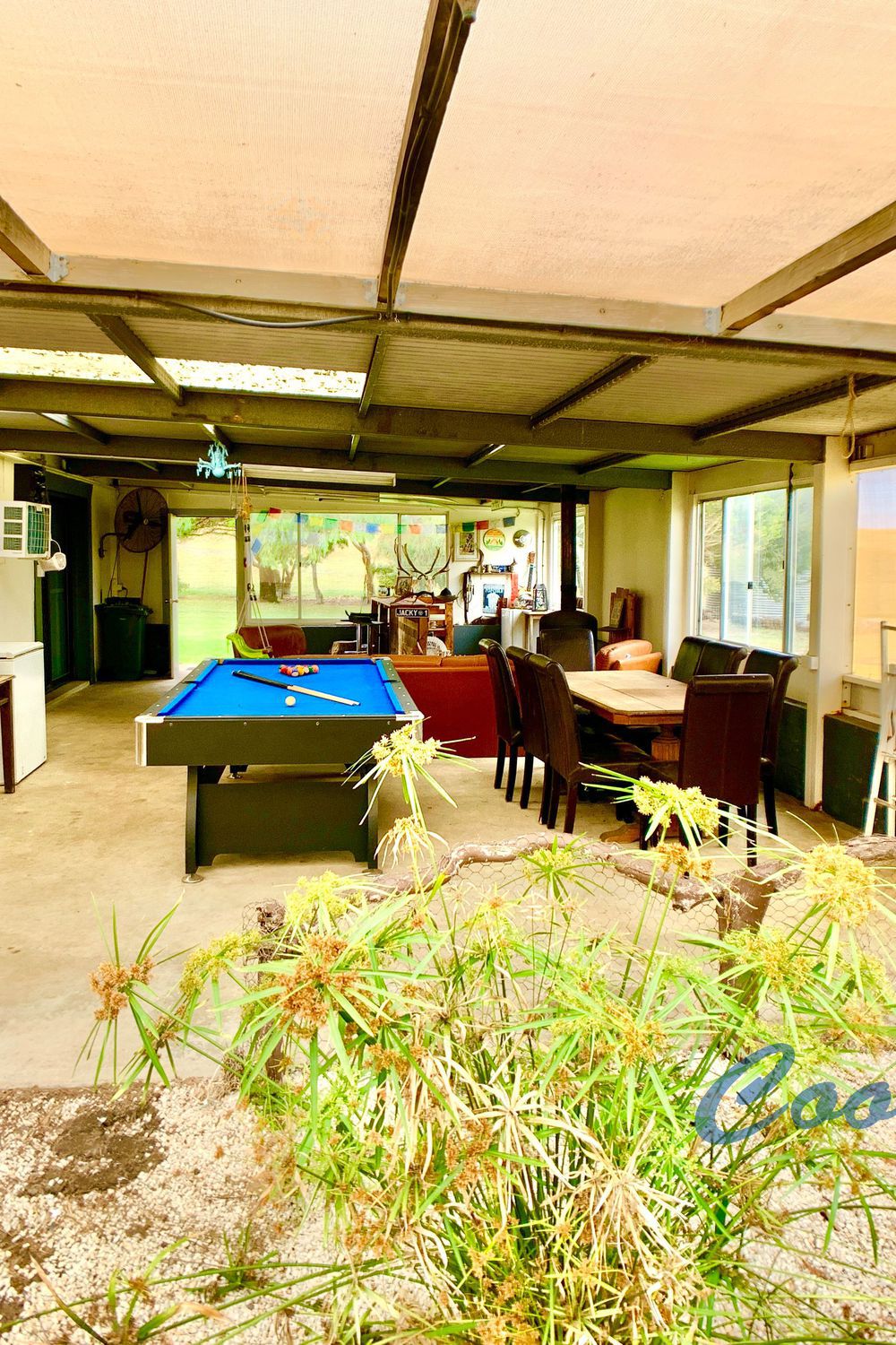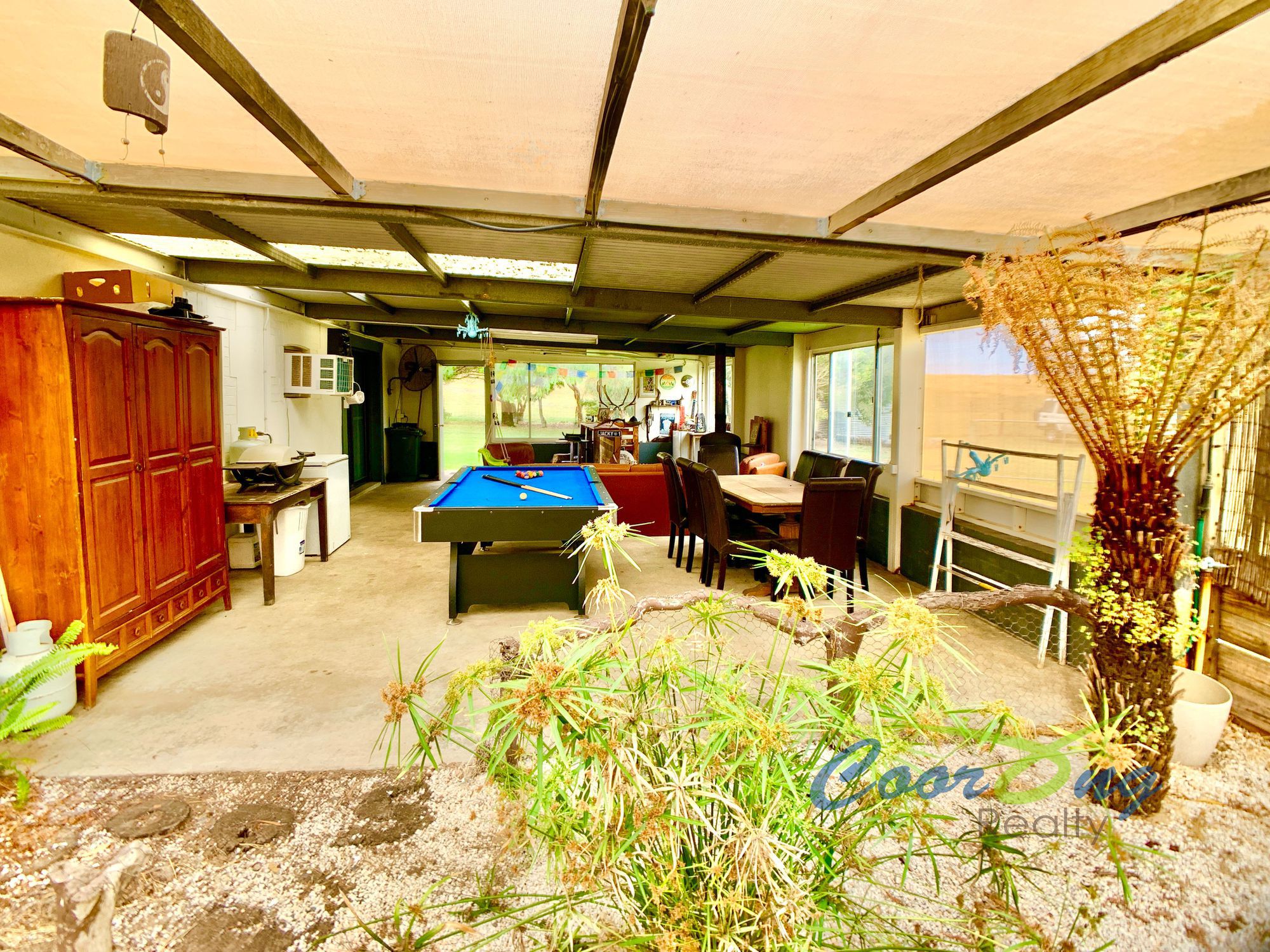 Undercover entertainment area with fernery