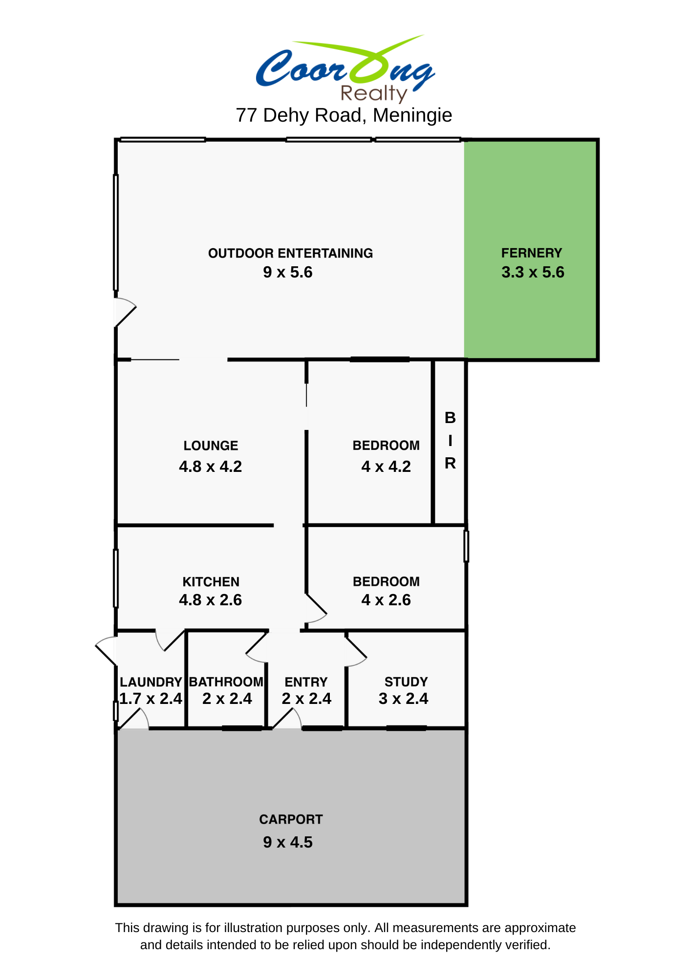 The lounge contains a slow combustion fire, reverse cycle air conditioner and leads to the large 9x6m undercover entertaining area with fernery. Enjoy Summer evenings in the indoor/outdoor area entertaining friends and family.